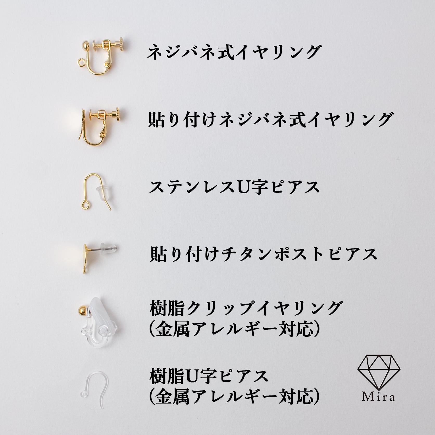 ピアス金具:ステンレスU字。キャッチ→シリコン
