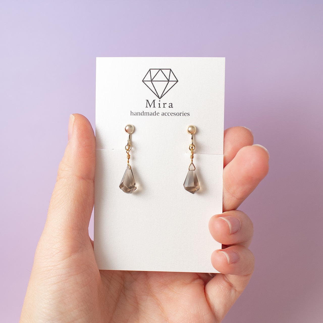 スモーキークオーツのドロップピアス・イヤリング