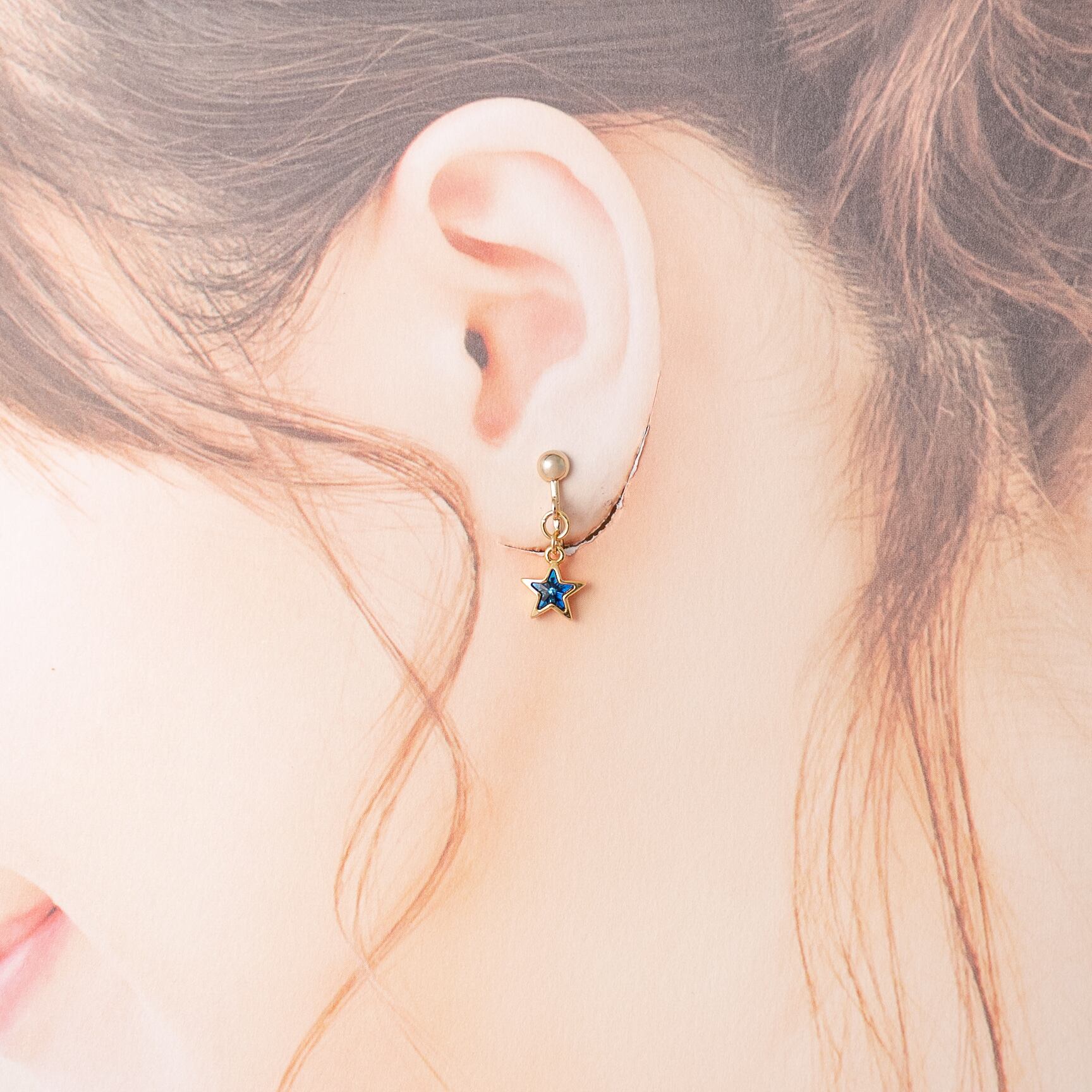 ミニひとつぶ流れ星ピアス・イヤリング【ブルー】