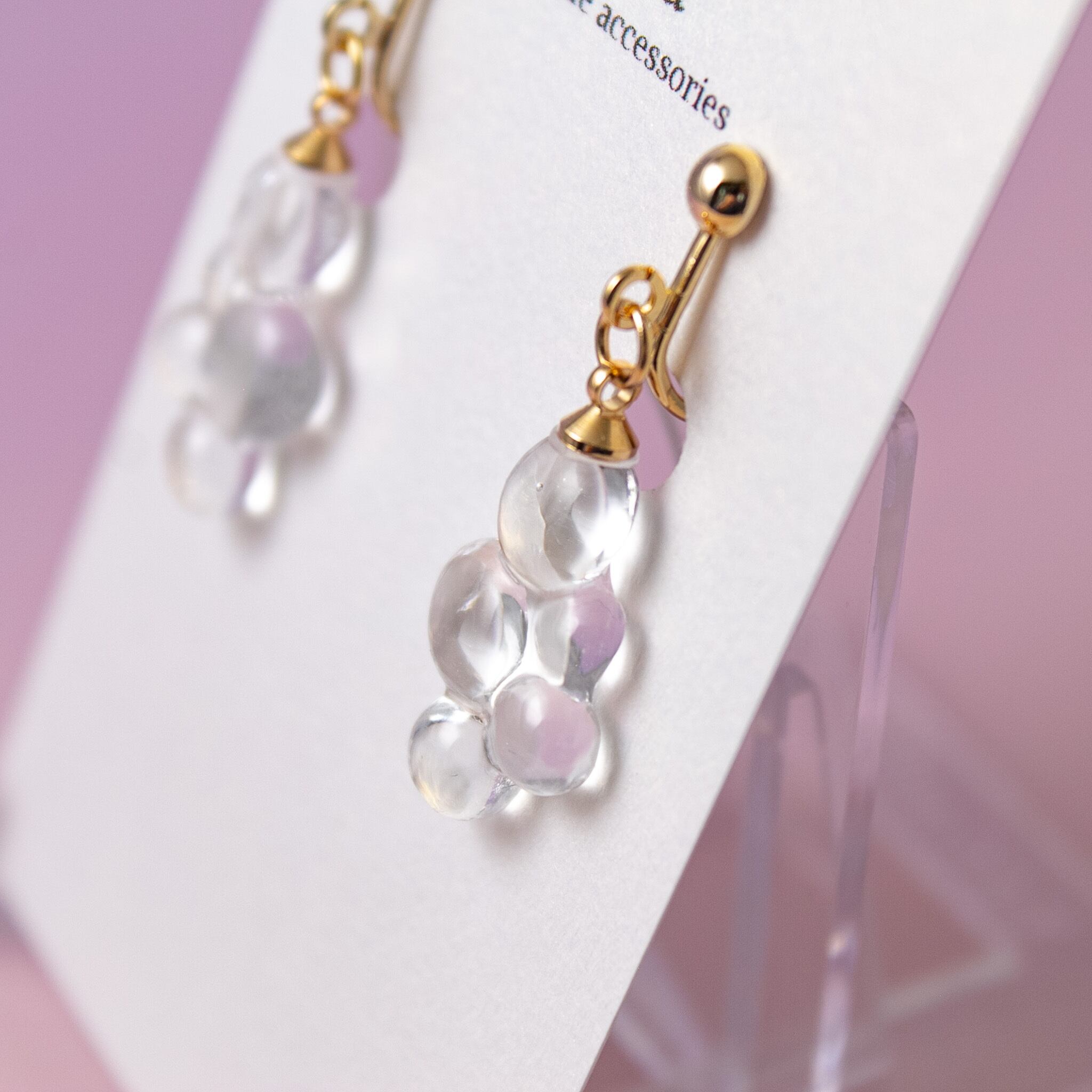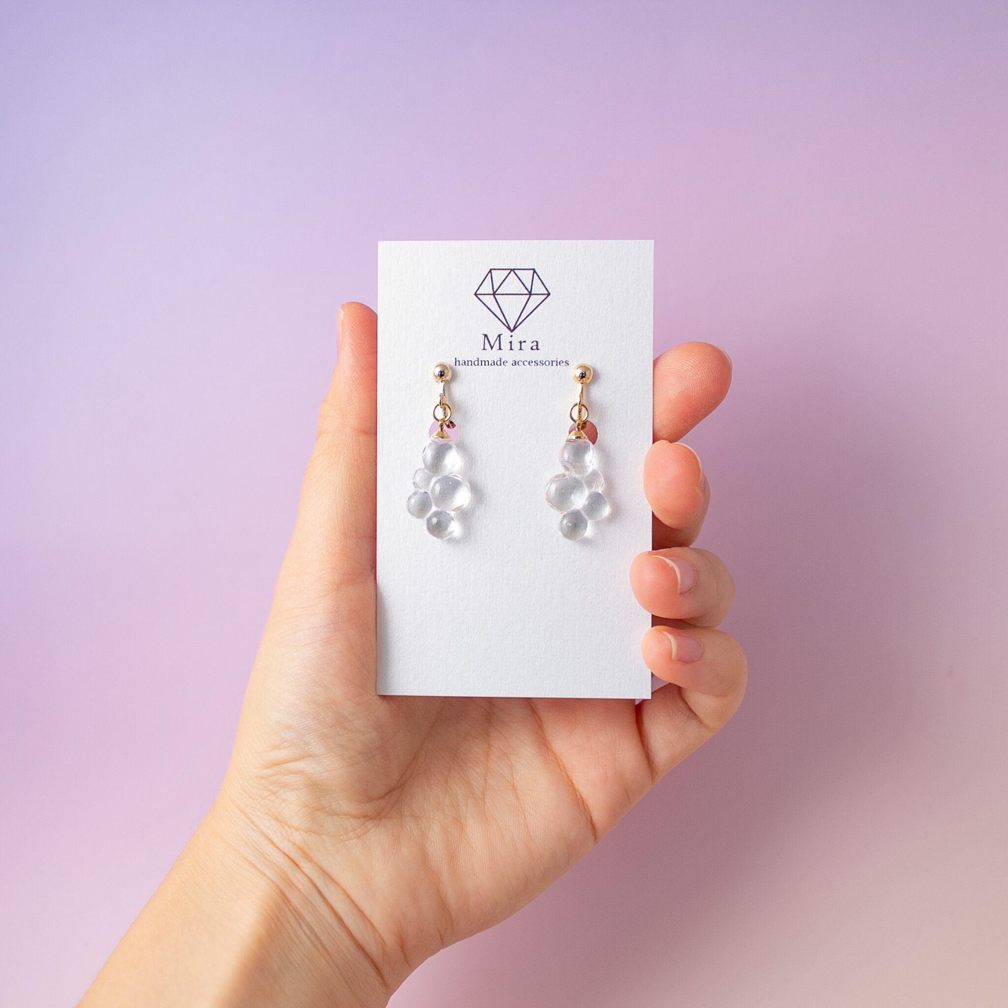 きらめくシャボン玉の耳飾りで、日常に小さなときめきをお届けします。