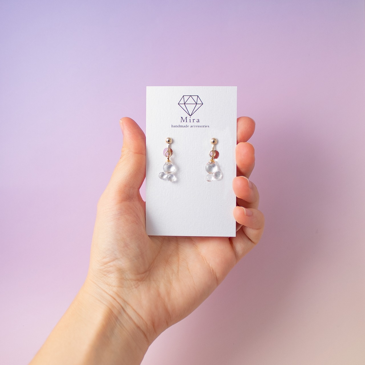 きらめくシャボン玉の耳飾りで、日常に小さなときめきをお届けします。